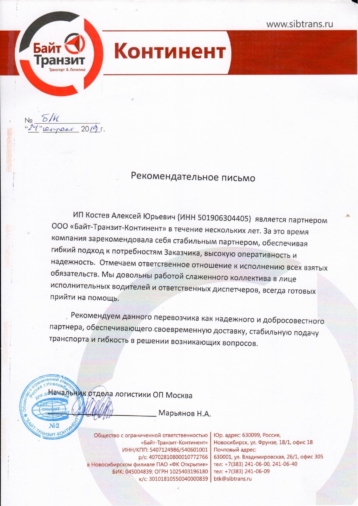 ИП Костев является партнером ООО «Байт-Транзит-Континент» в течение нескольких лет. За это время компания зарекомендовала себя стабильным партнером, обеспечивая гибкий подход к потребностям Заказчика, высокую оперативность и надежность.